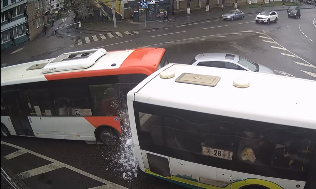 Маршрутний транспортний засіб № 22, рухаючись позаду маршрутки № 28, не дотримався безпечної дистанції та допустив зіткнення з автобусним маршрутом № 28, який стояв на кільці для надання переваги іншим транспортним засобам.