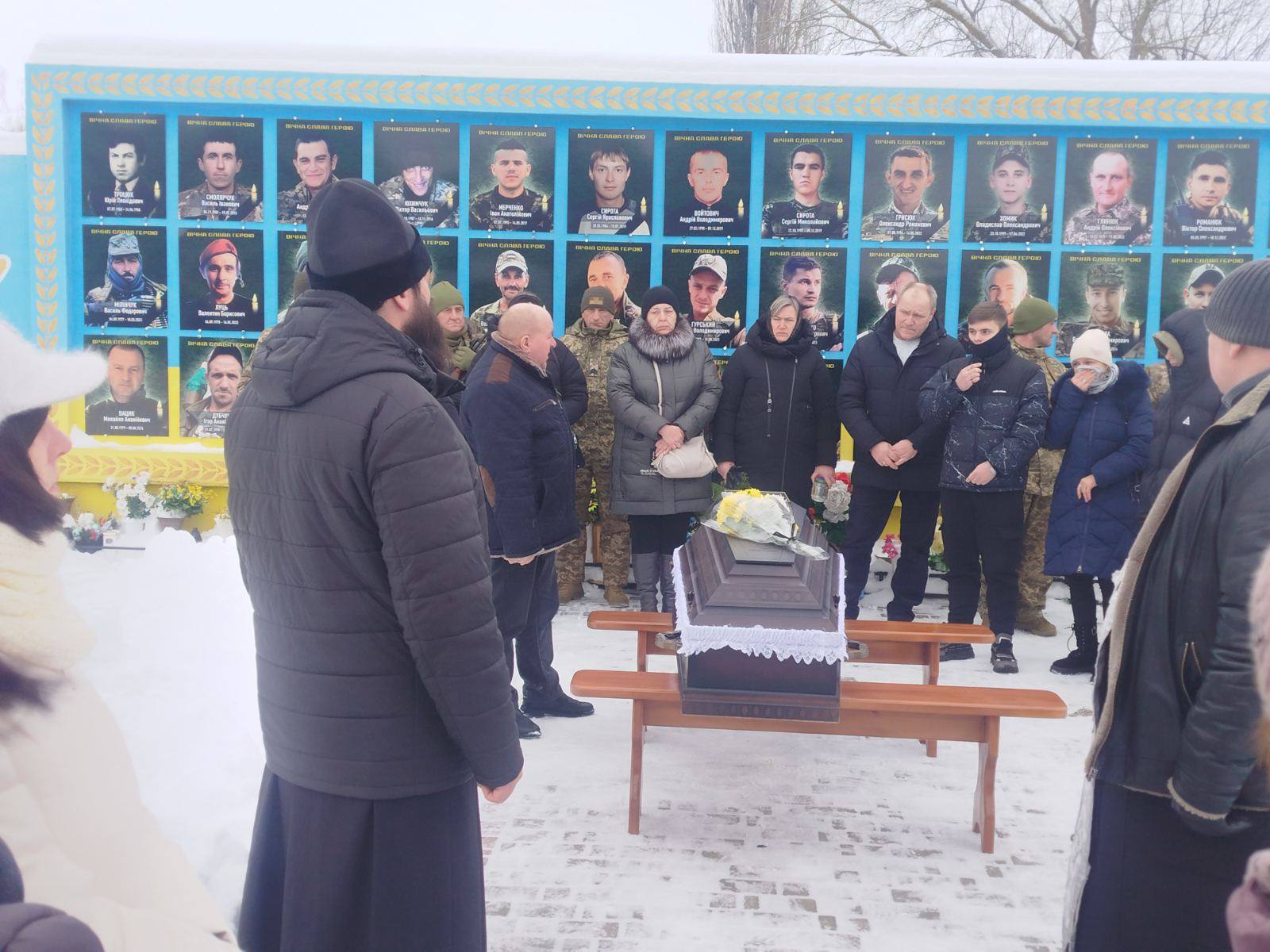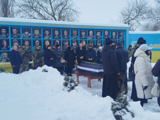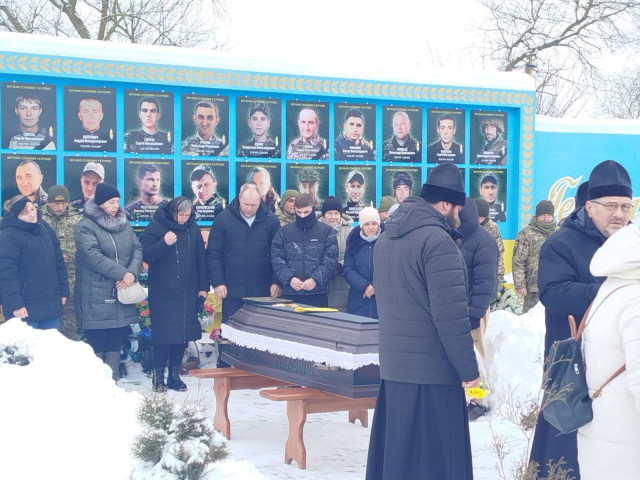 Поховали захисника з усіма військовими почестями на місцевому кладовищі під звуки державного гімну та прощальні залпи.
