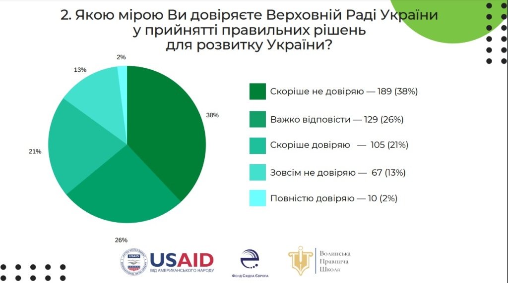 У п’ятницю, 29 травня, у «Волинській правничій школі» в онлайн-режимі презентували результати опитування «Парламент очима молоді: бачення та очікування», що його проводили в рамках проєкту «Доступно про парламентаризм», який реалізовують в межах Програми USAID «РАДА: відповідальність, підзвітність, демократичне парламентське представництво», що виконується Фондом Східна Європа.