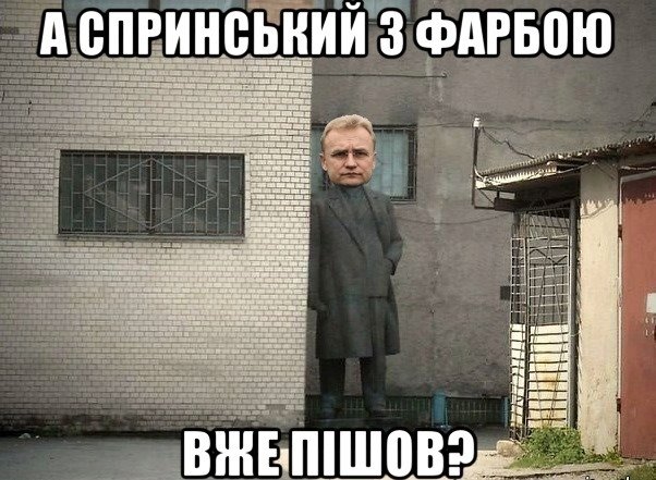 Закінчилося спілкування, як уже зазначалось, обливанням фарбою. «Я це називаю мистецькою акцією, – пояснює «Вголосу» Іван Спринський. – Це не були шкідливі речовини. Проста гуаш. Зробив це, бо несила терпіти. У Львові постійно відбуваються мітинги через свавілля Садового, але ніхто на це не реагує. Мерія продовжує дерибанити майно, а правоохоронці продовжують закривати очі.