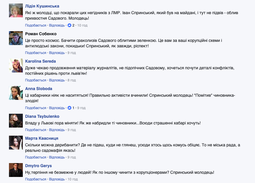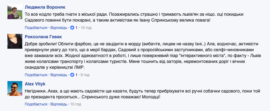 Як громада зреагувала на облиття фарбою чиновників Садового. Скріншоти коментарів містян під новиною про нинішні події в ЛМР: