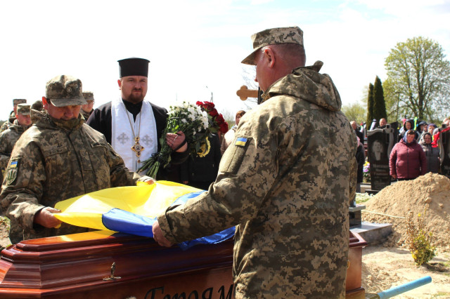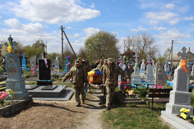 Поховали загиблого Дмитра Демчука з усіма військовими почестями на сільському кладовищі.