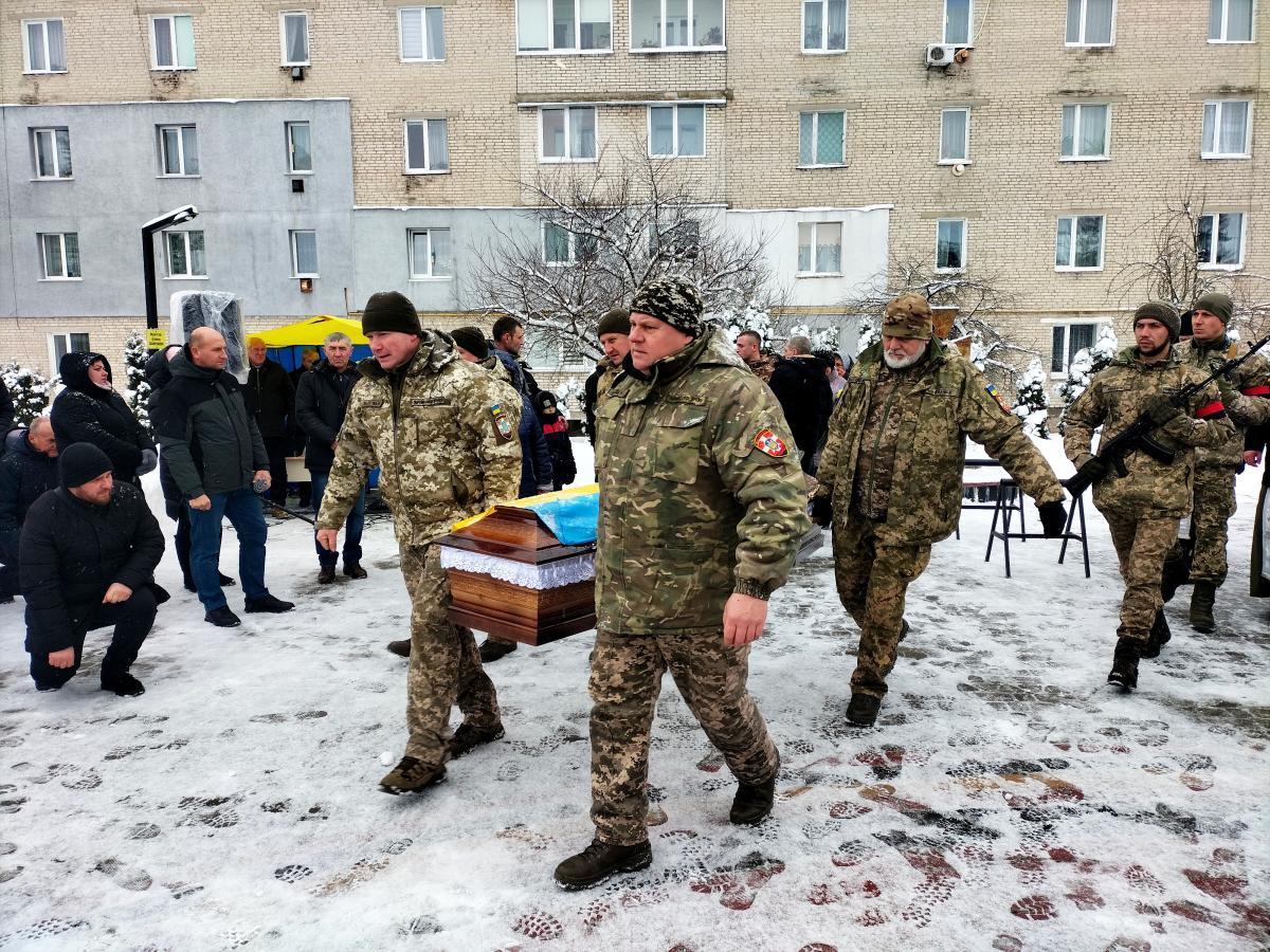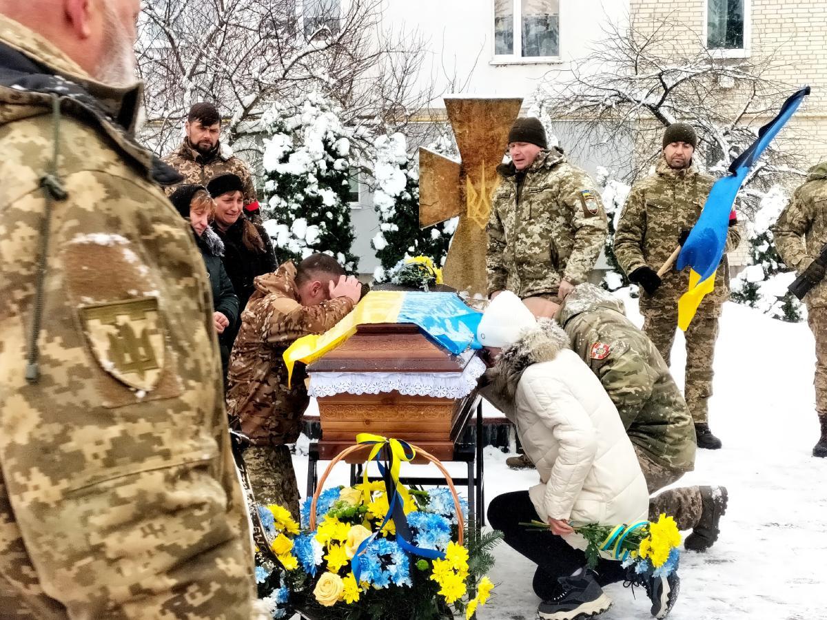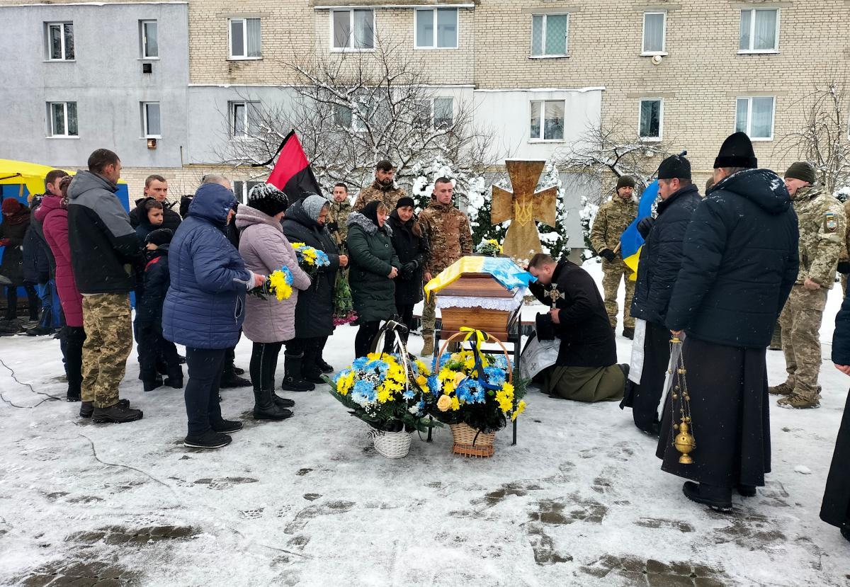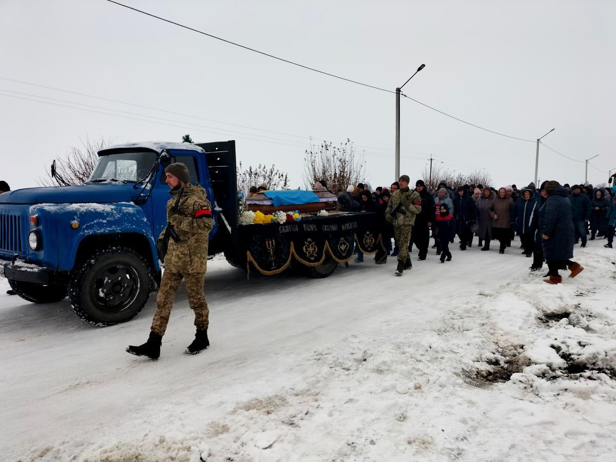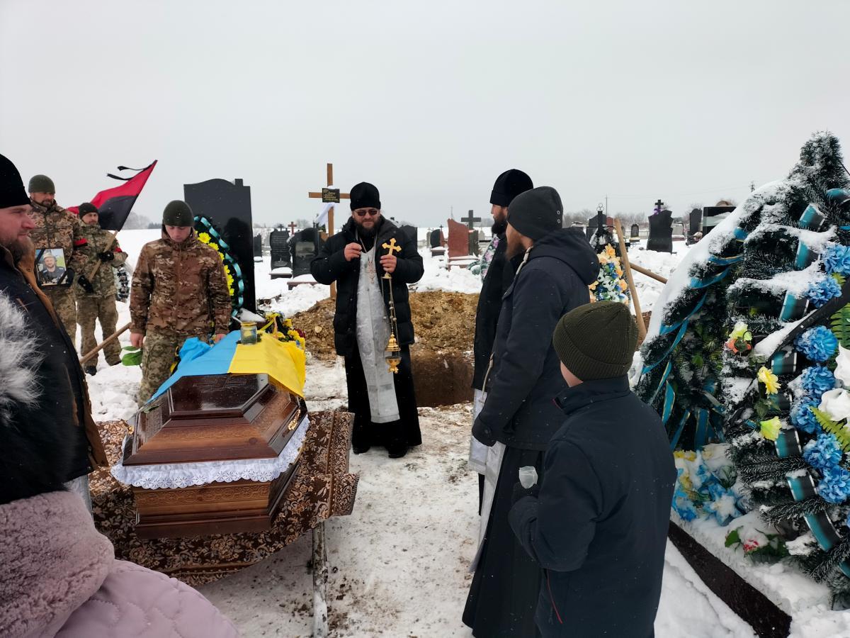 Односельці теж зустріли загиблого земляка навколішки, віддаючи йому останню шану, бо у їхній пам’яті він залишився звичайним сільським хлопцем, щирим, привітним та працьовитим.Останнє прощання у рідній домівці, спільна молитва за світлу душу невинно вбитого вояка – і велелюдною процесією загиблого під звуки військового оркестру та жалобні піснеспіви провели до місцевого храму. Чин похорону продовжили у храмі Різдва Пресвятої Богородиці.Під військові залпи та мелодію Державного Гімну України Михайла Лукашука поховали на місцевому кладовищі. А національний стяг, яким було вкрито домовину, зі словами вдячності за мужнього воїна і щирого патріота передали військові сестрі загиблого.