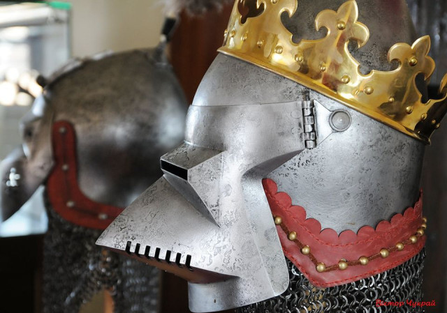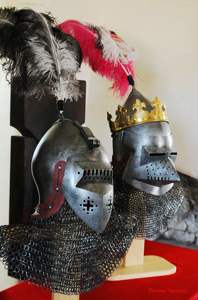 На виставці представлена реконструкція шолому князя Любарта, Бацинет (Bascinet) з клепвізером і кольчужною бармицей (авентайлом) з XIV ст., а також реконструкція шолому Великого князя Вітовта, Бацинет (Bascinet) хундсгугель (собача морда) з кольчужною бармицей (авентайлом), датованого XV ст.