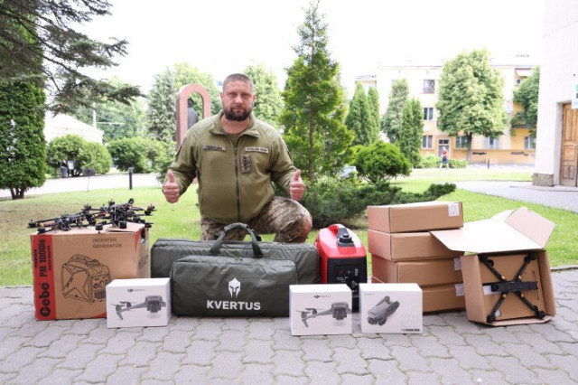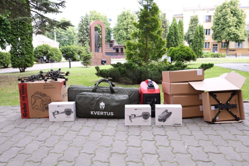 Військовій частині А 4898 дісталися 3 шт. DJI Mavic 3, 1шт. рушниця «Квертус», два інверторні генератори на 1 кВт, 5 шт. – FPV 8 дюймів з тепловізійною камерою та 5 шт. – FPV 7 дюймів (без батареї).