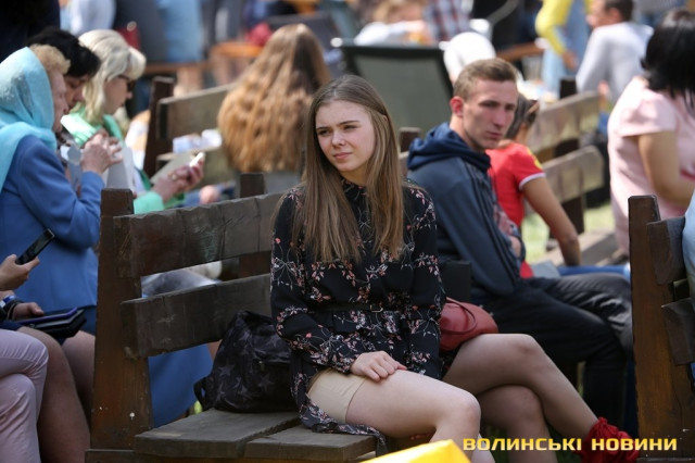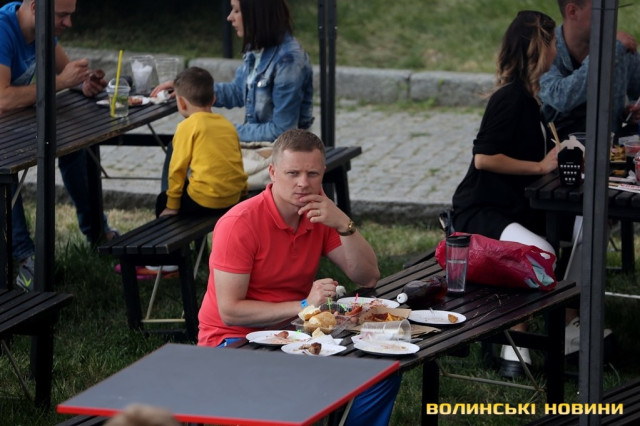 Вже до обіду на території Луцького замку яблуку було ніде впасти, тож відвідувачі, які заздалегідь не подбали про те, аби зайняти місце, купивши смаколиків, влаштовувалися на лавках чи травичці.