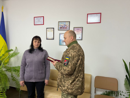 Представник Першого відділу Ковельського РТЦК та СПН вручив нагороду дружині полеглого Героя Світач Ірині Вікторівні.