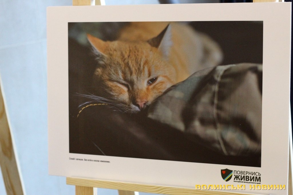 Як розповіла представниця благодійного фонду допомоги армії «Повернись живим» Віра Прохира, Луцьк став третім містом, куди приїхала фотовиставка, після Києва та Дніпра. Після Луцька роботи повезуть іншими містами Західної України. Зважаючи на те, що війна триває вже протягом трьох років, а у мирних містах хочеться сховатися від її жаху та втрат, організатори думали над тим, як зробити так, щоб бажання відгородитися та не бачити війни перемогли людяність та співчуття. Переглядаючи фотоархіви фонду, побачили, що є багато робіт з котами та песиками. Вирушаючи на передову, волонтери часто стикаються з тим, що майже нічого не можна фотографувати – ані облич бійців, ані місцевості. Отже, часто в кадр потрапляють тварини. Через такі світлини, зрозумілі навіть дітям, хочуть нагадати про біль, який переживає країна. На її думку, соромно не намагатися відгородитися від цих подій, а бути до них байдужим.