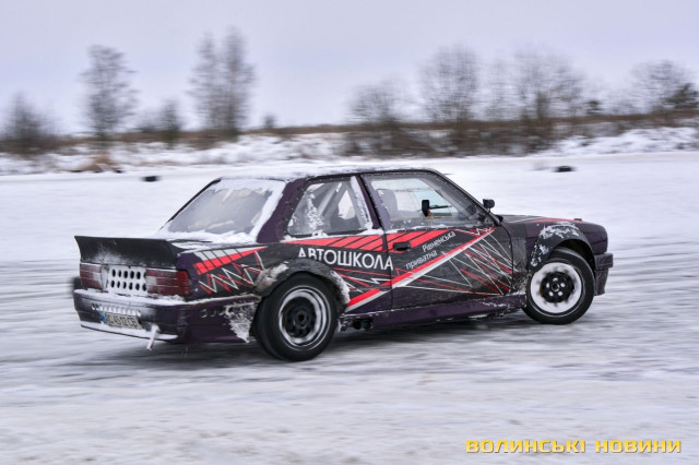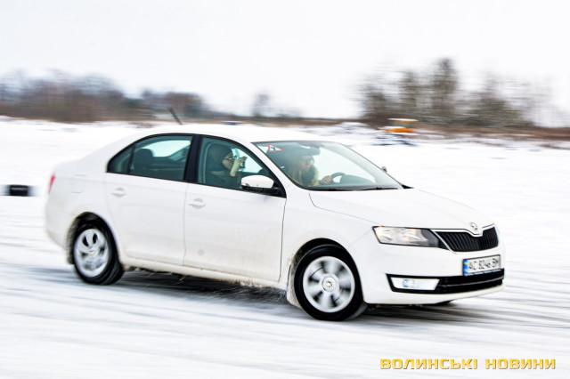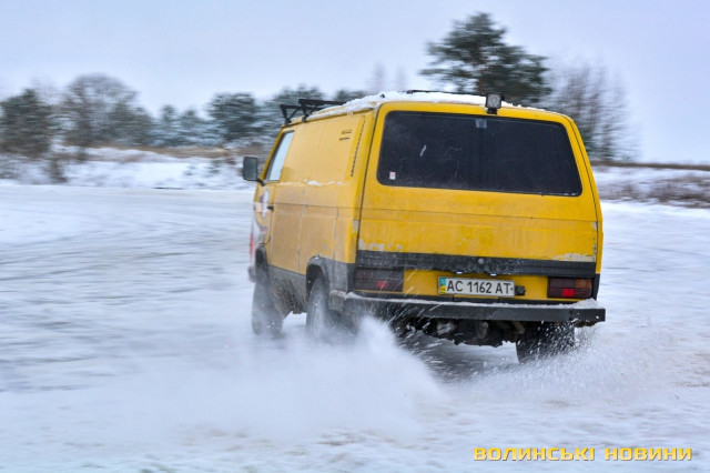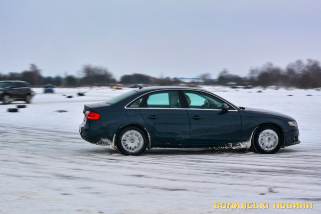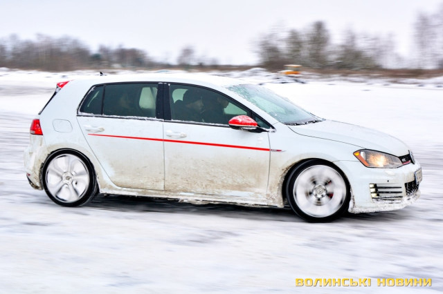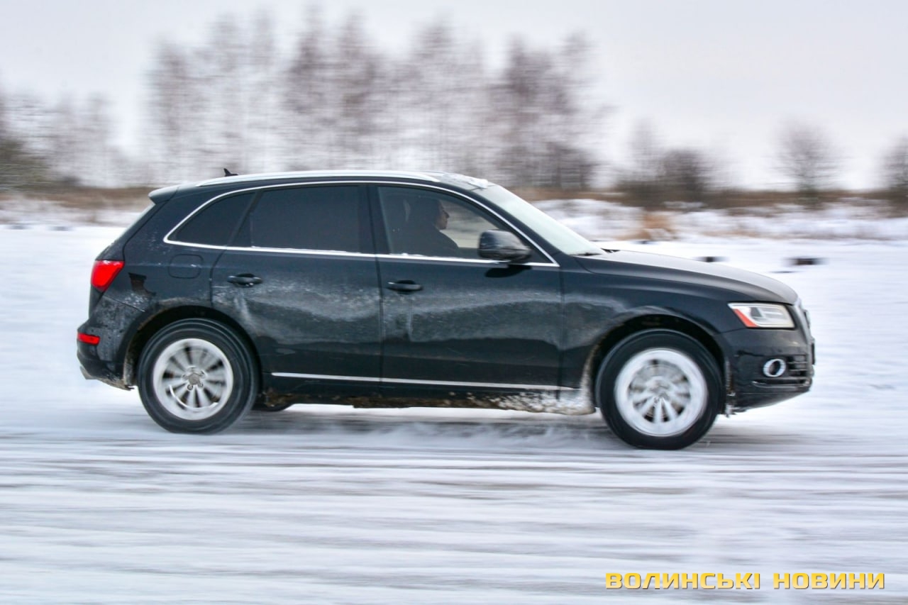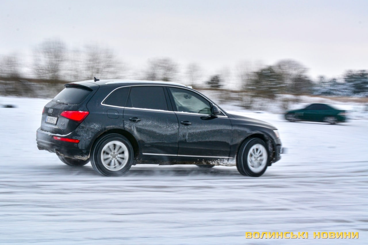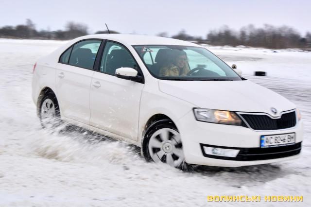 Дрифт на засніженій трасі. Біля Луцька водії вправлялись у контраварійному водінні