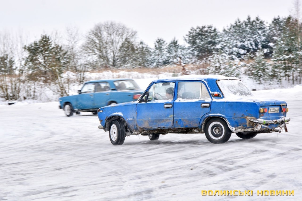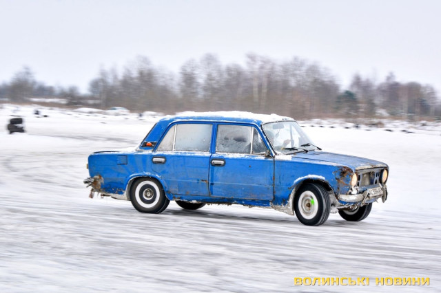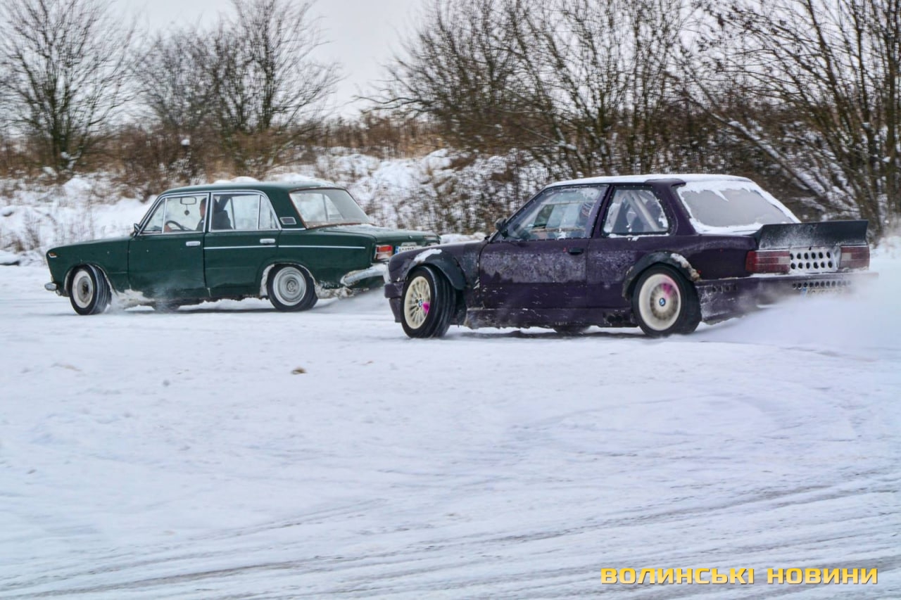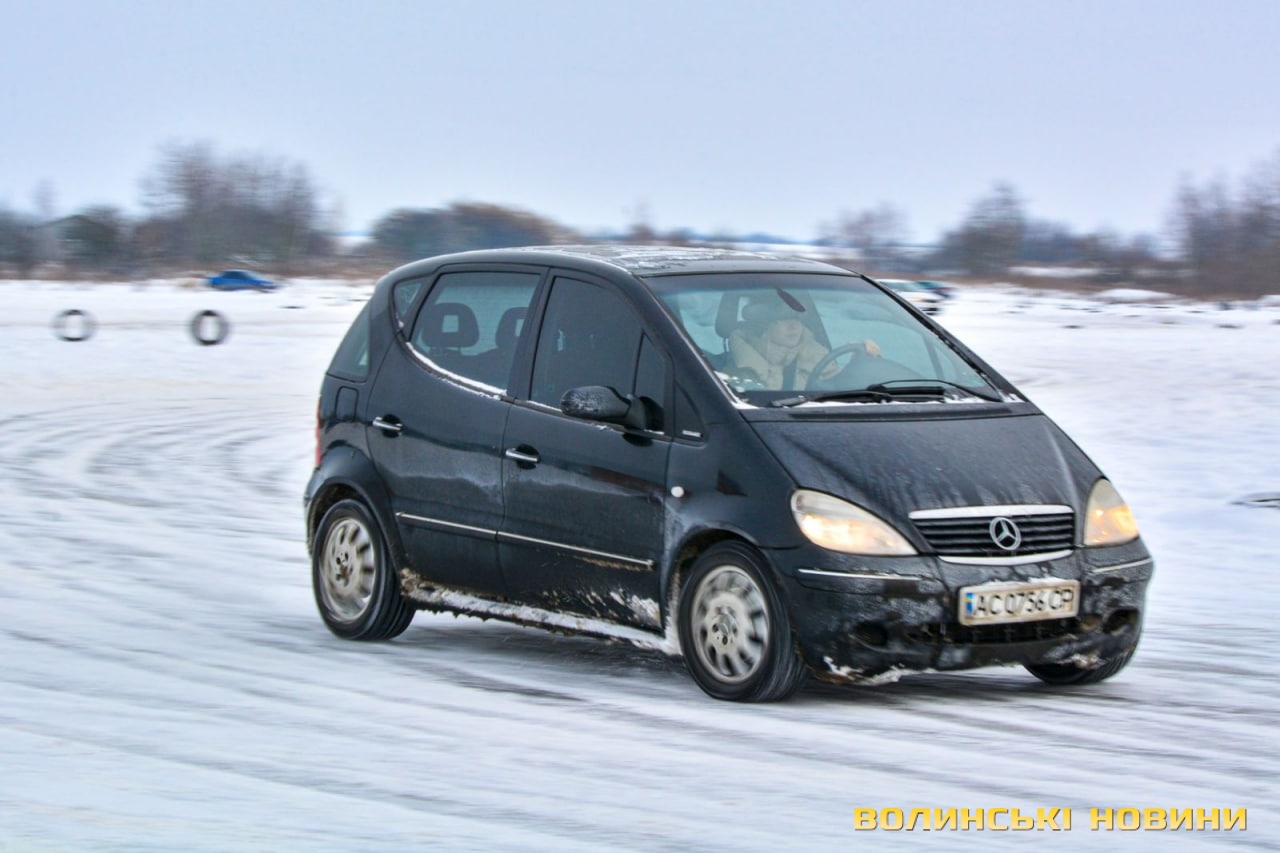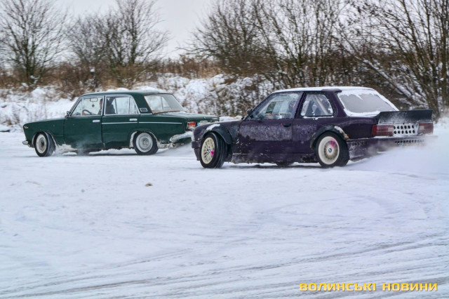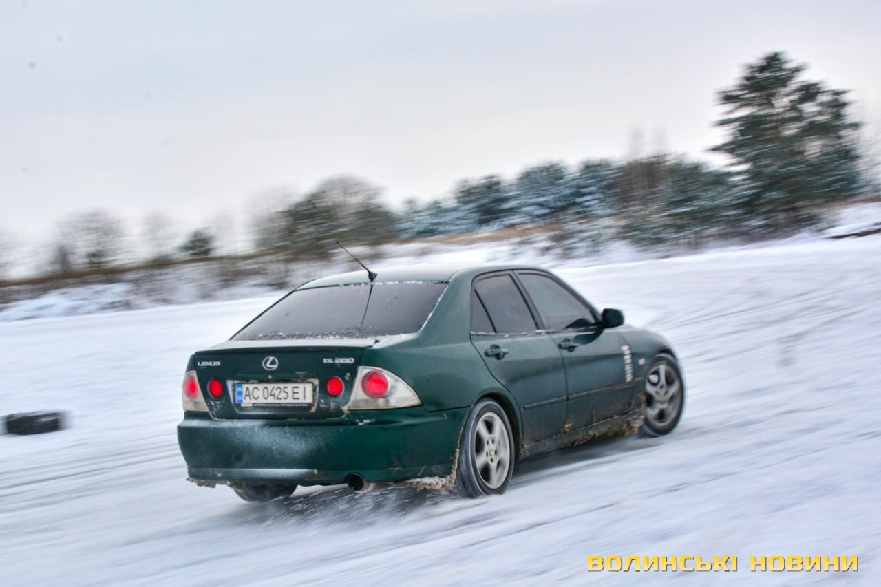 Дрифт на засніженій трасі. Біля Луцька водії вправлялись у контраварійному водінні