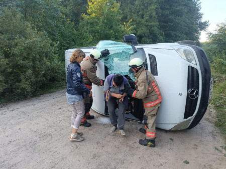 Сьогодні вранці у селі Котуш Камінь-Каширської громади трапилася ДТП, внаслідок якої автомобіль Mersedes перекинувся.