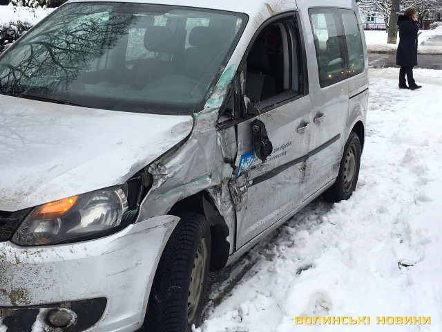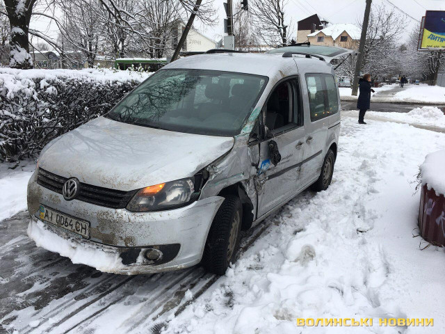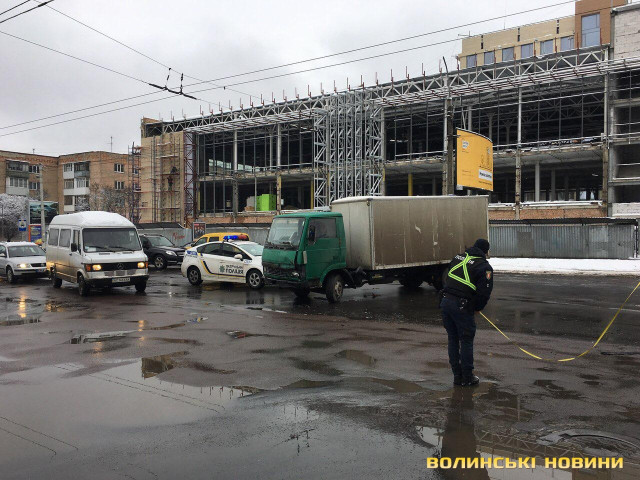 ДТП трапилась в обідню пору 14 грудня. Здійсюючи поворот з вулиці Рівненської на вулицю Електроапаратну відбулося зіткнення вантажівки та легковика.