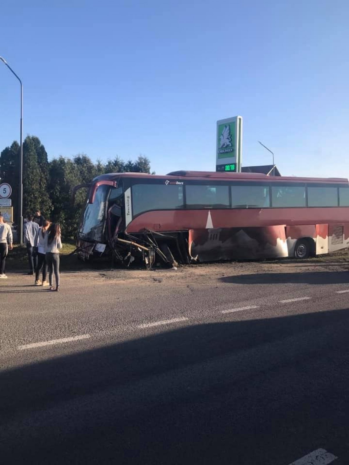 Пасажирський автобус на білоруських номерах лівим боком зачепив автомобіль ВАЗ-2109.