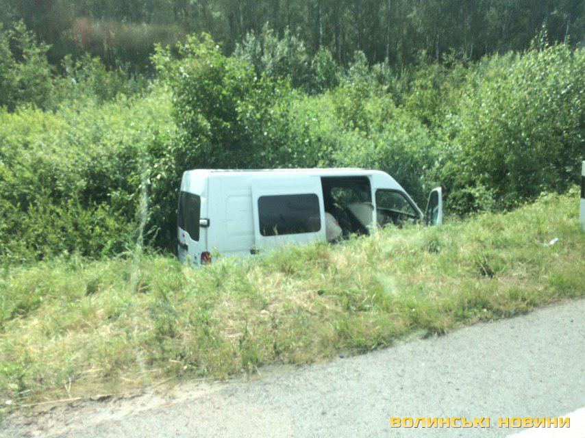 На Волині водій буса Renault втратив керування і злетів в кювет. На щастя, автомобіль не зіткнувся із зустрічним транспортом, обійшлось без жертв.