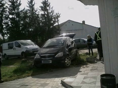 Водійка Мерседеса, паркуючись біля магазинів LM і “Зодіак”, переплутала педаль гальма з газом, переїхала через бордюр і наїхала на бетонну клумбу, що знаходилась за метр від вхідних дверей магазину.