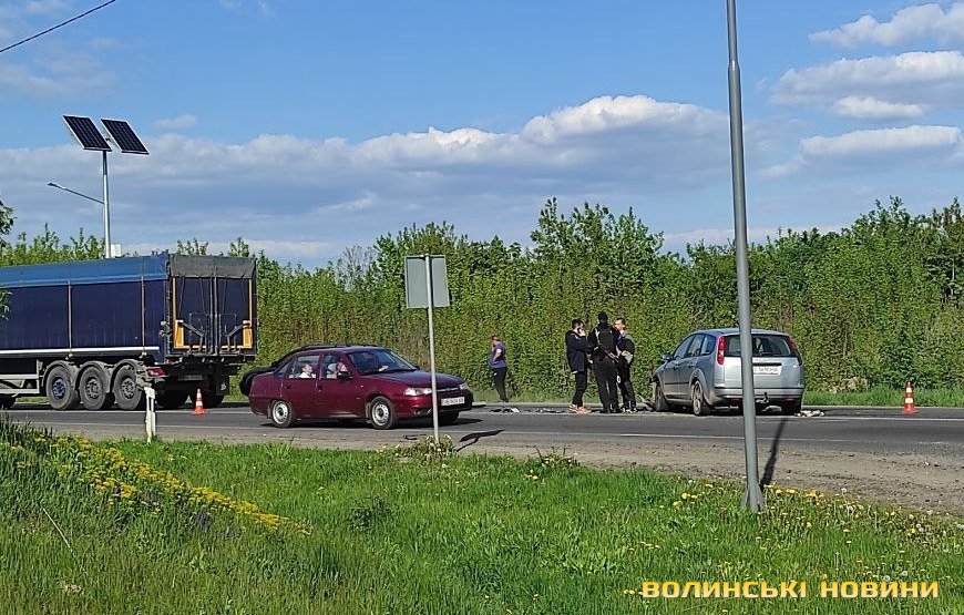 Сьогодні неподалік Луцька на повороті на село Баїв трапилася аварія. Зіштовхнулися легковий автомобіль Ford Focus та вантажівка.
