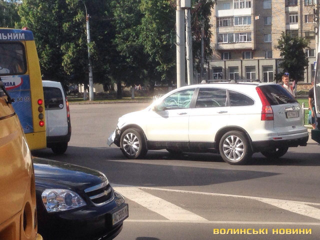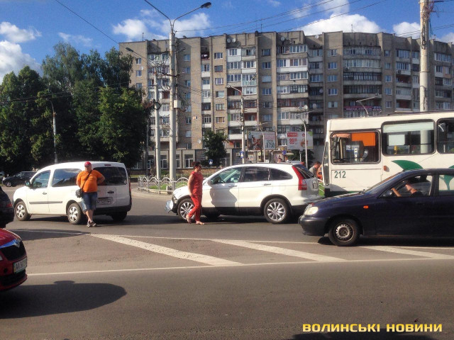 У кросовера пошкоджена водійська ліва частина. Жінка-водій Хонди каже, що при в`їзді на кільце інший водій її "підрізав".