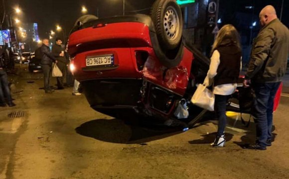 Автомобіль МініКупер після ДТП перевернувся, прибула швидка на місце події і три патрульних авто в зв’язку з конфліктом.