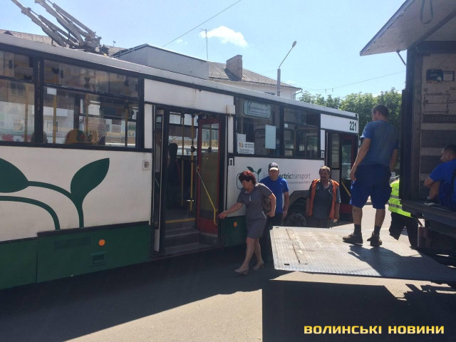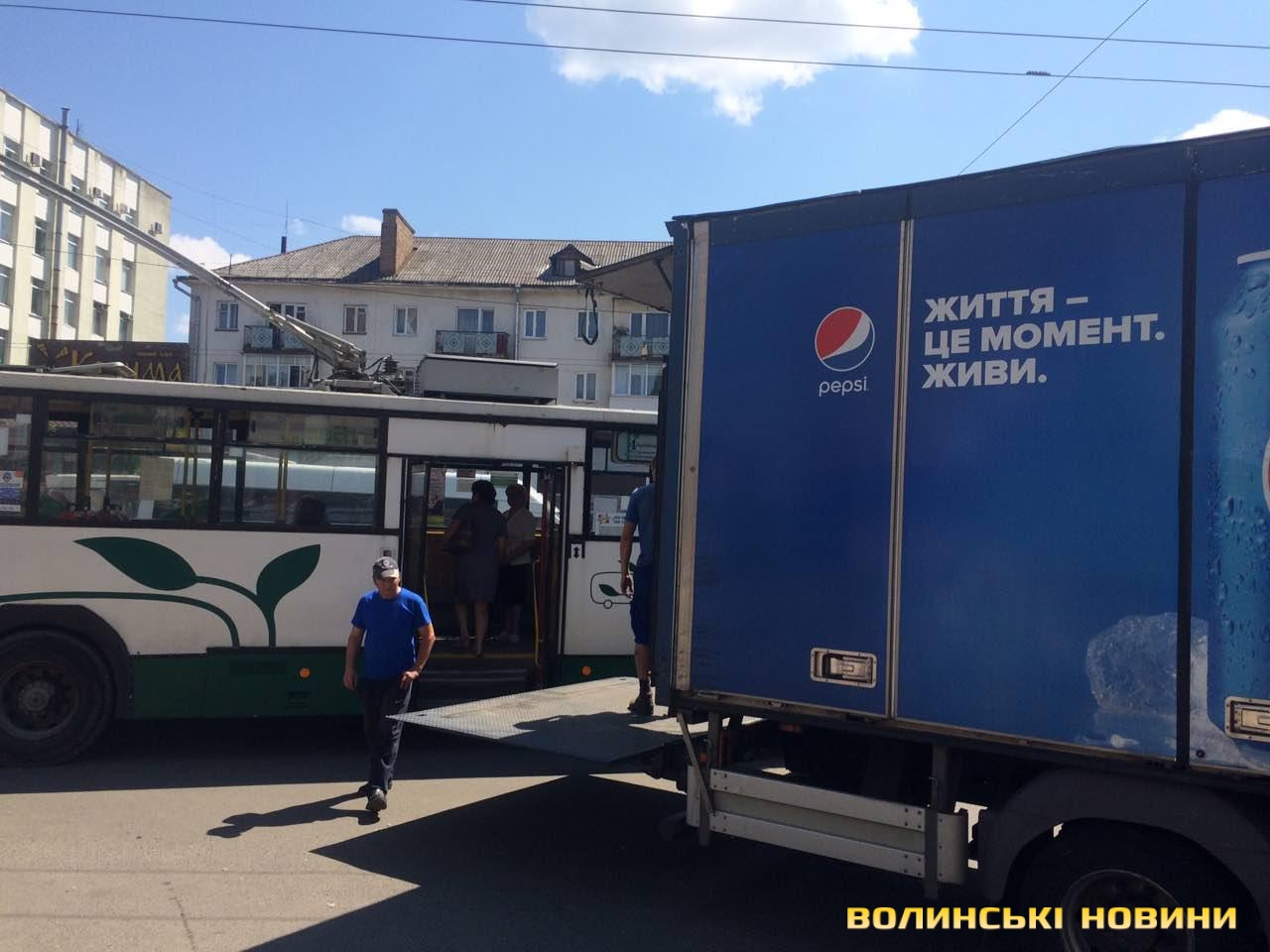 У Луцьку тролейбус зачепив платформу вантажного автомобіля, яка виступала на проїжджу частину. Тролейбус отримав незначні механічні ушкодження.
