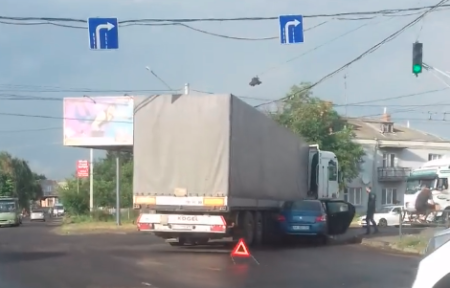 ДТП у Луцьку: вантажівка притиснула легковик. Відео
