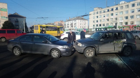 На площі Возз’єднання у Луцьку трапилась ДТП за участю Toyota Avensis, Suzuki, ЗАЗ Таврія і маршрутки №8.