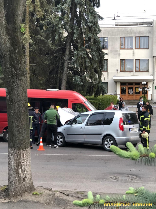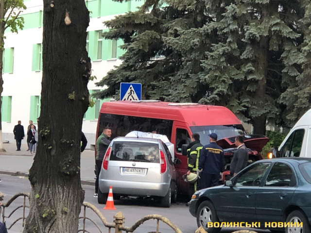 ДТП у центрі Луцька: бус і легковик зіткнулись на зустрічній, є постраждалі. Фото
