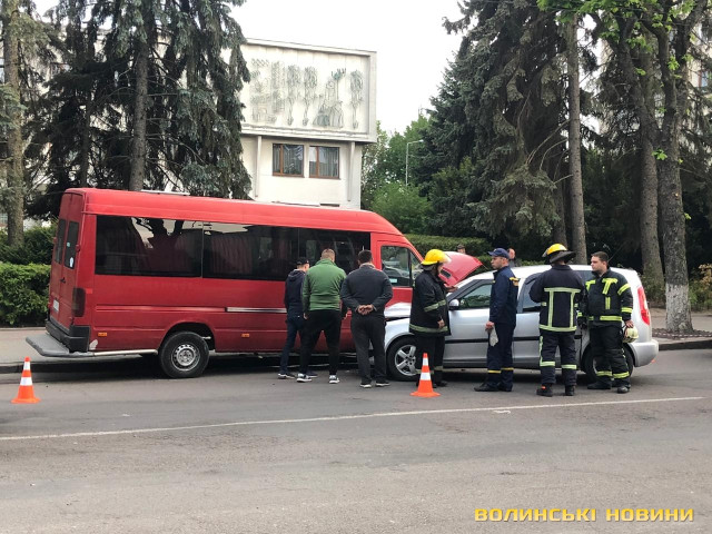 На проспекті Волі у місті Луцьку трапилась аварія – водій буса виїхав на смугу зустрічного руху, де зіткнувся з легковиком.
