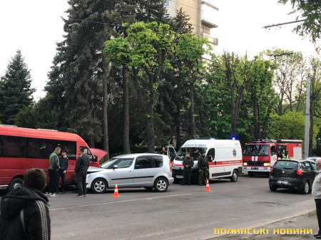 На проспекті Волі у місті Луцьку трапилась аварія – водій буса виїхав на смугу зустрічного руху, де зіткнувся з легковиком.