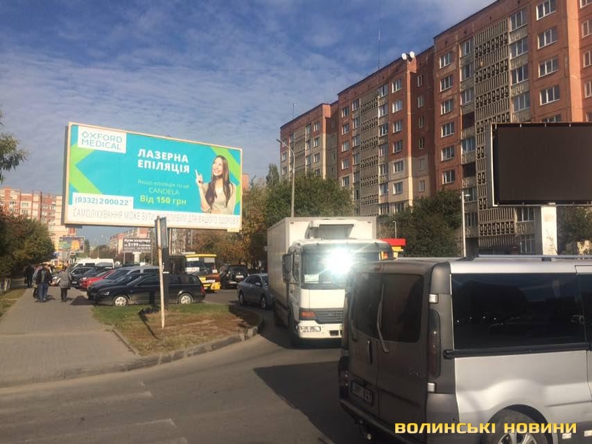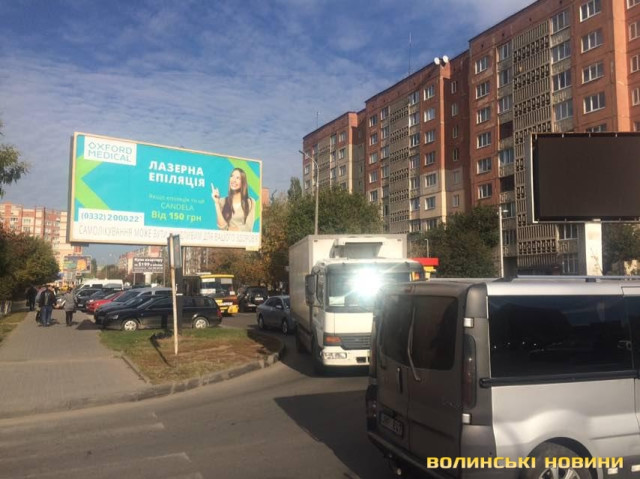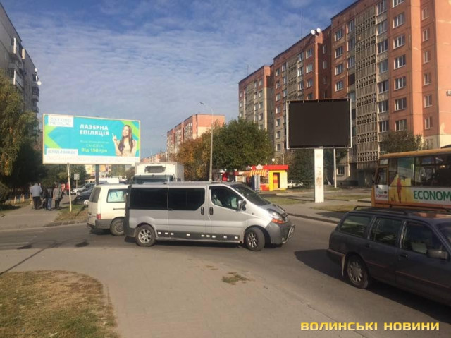 У результаті зіткнення мікроавтобуса та вантажівки з причепом повністю заблокований рух вулицею Кравчука в Луцьку.
