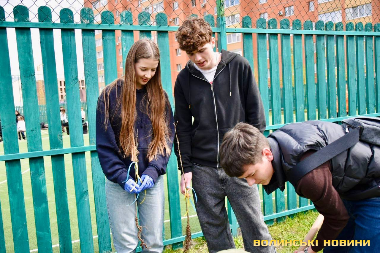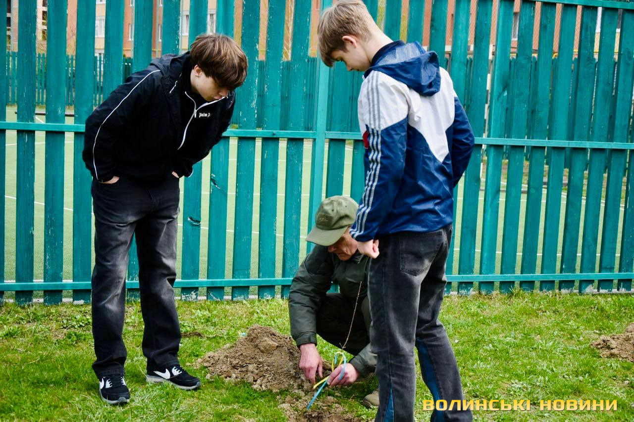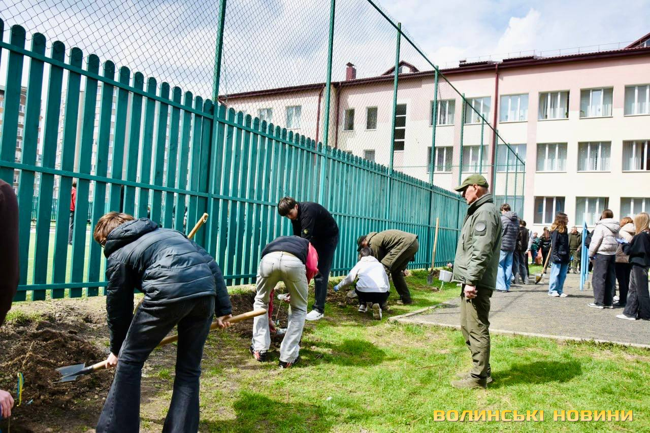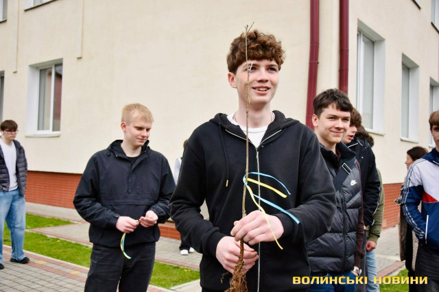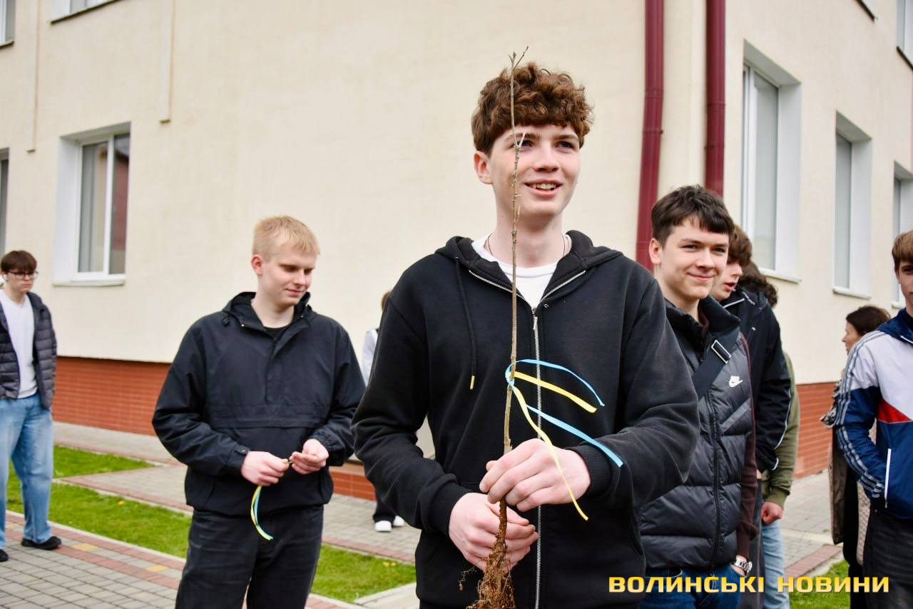 До заходу долучилися представники міської ради, Державної екологічної інспекції у Волинській області та здобувачі освіти ліцею.Дуб має велике символічне значення для українців, адже такий же міцний та непохитний, переконаний директор департаменту освіти Луцької міської ради Віталій Бондар.«Маємо гарну нагоду, приурочену до щорічної толоки – екоакцію «Дуби Шевченка єднають Україну». Дуб – це дерево, яке має глибоке коріння і досить потужне гілля, а стовбур дуже міцний: це символічне дерево для нас, українців. І в межах нашої толоки маємо можливість їх висадити в одному з найкращих закладів області, адже його здобувачі освіти щороку показують чудові результати на різноманітних олімпіадах, турнірах, тестах. Тому сьогодні спільно з відділом екології Луцької міської ради, Державною екологічною інспекцією у Волинській області за підтримки секретаря та виконувачки обовʼязків Луцького міського голови Катерини Шкльоди проводимо цю акцію», – наголосив Віталій Бондар.Як вже згадували, у Луцьку екоакцію «Дуби Шевченка єднають Україну» проводять вже вчетверте, раніше такі дерева висадили у сквері героїв Майдану та Небесної сотні, у ЗОШ №7 та ЗОШ №3, розповіла начальниця відділу екології Луцької міської ради Оксана Лисак.«В Україні є багато старовікових дерев, які спеціально доглядають та оберігають, бо вони є безцінним рослинним генофондом. І от, власне, всі ми знаємо нашого геніального поета, провидця Тараса Шевченка, він, будучи маленьким, коли працював на пана Енгельгардта, писав свої перші твори, проживав на Черкащині, і саме там є три дуби, яким близько тисячі років. У 2018 році активна молодь розпочала розмножувати ці дерева з жолудів і робити з них цілі парки та сквери, цю акцію взяло під егіду Міністерство довкілля, й відтоді вона стала щорічною. Зараз вона відбувається у такому масштабі – через територіальні підрозділи Державної екологічної інспекції по всіх областях України розсилають по 25 саджанців дубів, акція стала проявом єдності, адже це кількість наших територіальних одиниць в країні. Також захід є частиною ініціативи Президента «Зелена країна», яка спрямована на підтримку збереження природи в Україні», – розповіла передісторію виникнення екоакції Оксана Лисак.Перед висаджуванням до кожного дерева символічно підвʼязали жовто-блакитну стрічку, опісля спеціаліст із лісу Юрій Іванович детально розповів учасникам акції, як потрібно висаджувати дерева. І лише після цього дорослі та школярі під суворим керівництвом експертів взялися до роботи.До екоакції в межах толоки радо долучилися 11-класники Антон Жур та Ілля Паридубець. Хлопці кажуть: мріють, аби Луцьк став одним з найбільш екологічних міст в Україні, саме тому хочуть повʼязати майбутнє зі сферою екології.«Зараз, коли наша держава перебуває у стані війни, екологія зазнає великих руйнувань і потребує постійного відновлення. Якщо це нині не відчутно нам, то хочеться, аби у майбутньому наші нащадки були здоровими і дихали чистим повітрям», – поділилися школярі.Їхня однокласниця Ірина Кузьмяк такої ж думки і прагне, аби до таких ініціатив долучалося все більше свідомих людей.«Я дуже рада, що долучилася до екотолоки і допомогла висаджувати дерева на території свого ліцею. Зараз весна, така пора, коли все розквітає, і хочеться зробити свій внесок в озеленення м