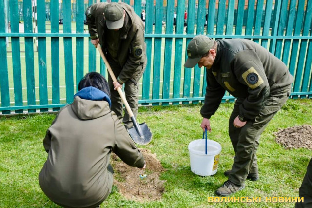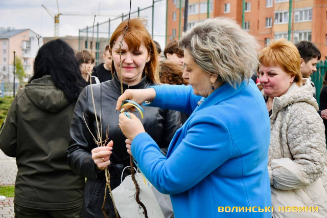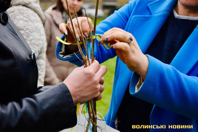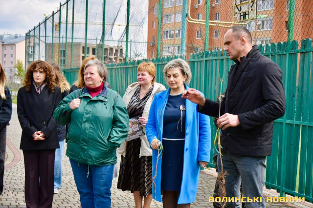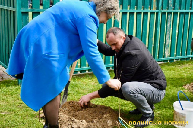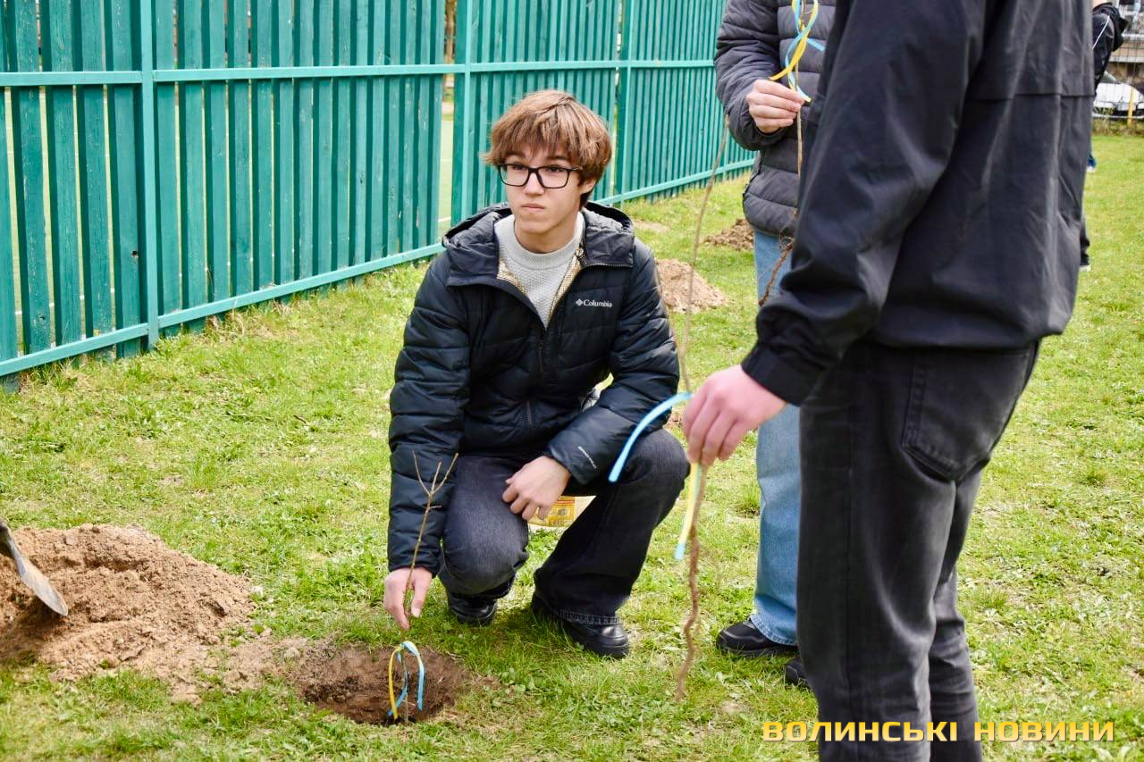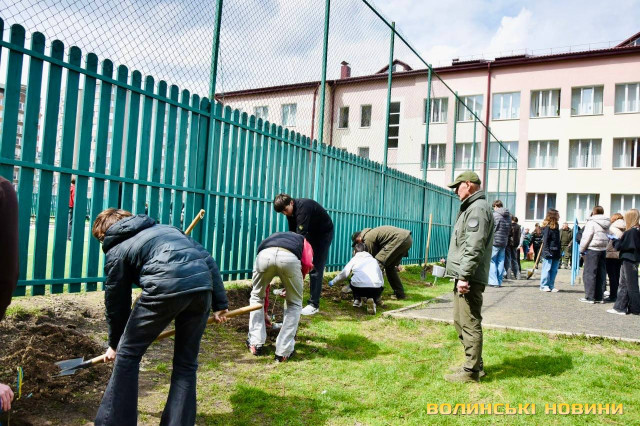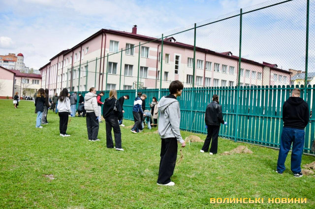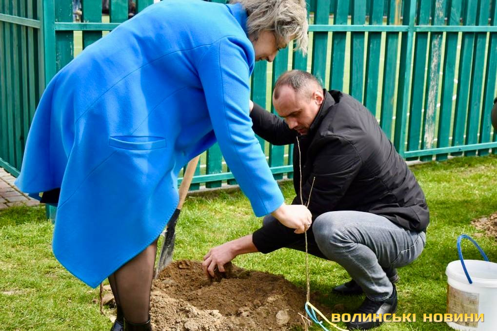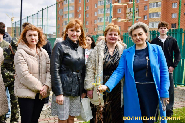 До заходу долучилися представники міської ради, Державної екологічної інспекції у Волинській області та здобувачі освіти ліцею.Дуб має велике символічне значення для українців, адже такий же міцний та непохитний, переконаний директор департаменту освіти Луцької міської ради Віталій Бондар.«Маємо гарну нагоду, приурочену до щорічної толоки – екоакцію «Дуби Шевченка єднають Україну». Дуб – це дерево, яке має глибоке коріння і досить потужне гілля, а стовбур дуже міцний: це символічне дерево для нас, українців. І в межах нашої толоки маємо можливість їх висадити в одному з найкращих закладів області, адже його здобувачі освіти щороку показують чудові результати на різноманітних олімпіадах, турнірах, тестах. Тому сьогодні спільно з відділом екології Луцької міської ради, Державною екологічною інспекцією у Волинській області за підтримки секретаря та виконувачки обовʼязків Луцького міського голови Катерини Шкльоди проводимо цю акцію», – наголосив Віталій Бондар.Як вже згадували, у Луцьку екоакцію «Дуби Шевченка єднають Україну» проводять вже вчетверте, раніше такі дерева висадили у сквері героїв Майдану та Небесної сотні, у ЗОШ №7 та ЗОШ №3, розповіла начальниця відділу екології Луцької міської ради Оксана Лисак.«В Україні є багато старовікових дерев, які спеціально доглядають та оберігають, бо вони є безцінним рослинним генофондом. І от, власне, всі ми знаємо нашого геніального поета, провидця Тараса Шевченка, він, будучи маленьким, коли працював на пана Енгельгардта, писав свої перші твори, проживав на Черкащині, і саме там є три дуби, яким близько тисячі років. У 2018 році активна молодь розпочала розмножувати ці дерева з жолудів і робити з них цілі парки та сквери, цю акцію взяло під егіду Міністерство довкілля, й відтоді вона стала щорічною. Зараз вона відбувається у такому масштабі – через територіальні підрозділи Державної екологічної інспекції по всіх областях України розсилають по 25 саджанців дубів, акція стала проявом єдності, адже це кількість наших територіальних одиниць в країні. Також захід є частиною ініціативи Президента «Зелена країна», яка спрямована на підтримку збереження природи в Україні», – розповіла передісторію виникнення екоакції Оксана Лисак.Перед висаджуванням до кожного дерева символічно підвʼязали жовто-блакитну стрічку, опісля спеціаліст із лісу Юрій Іванович детально розповів учасникам акції, як потрібно висаджувати дерева. І лише після цього дорослі та школярі під суворим керівництвом експертів взялися до роботи.До екоакції в межах толоки радо долучилися 11-класники Антон Жур та Ілля Паридубець. Хлопці кажуть: мріють, аби Луцьк став одним з найбільш екологічних міст в Україні, саме тому хочуть повʼязати майбутнє зі сферою екології.«Зараз, коли наша держава перебуває у стані війни, екологія зазнає великих руйнувань і потребує постійного відновлення. Якщо це нині не відчутно нам, то хочеться, аби у майбутньому наші нащадки були здоровими і дихали чистим повітрям», – поділилися школярі.Їхня однокласниця Ірина Кузьмяк такої ж думки і прагне, аби до таких ініціатив долучалося все більше свідомих людей.«Я дуже рада, що долучилася до екотолоки і допомогла висаджувати дерева на території свого ліцею. Зараз весна, така пора, коли все розквітає, і хочеться зробити свій внесок в озеленення м