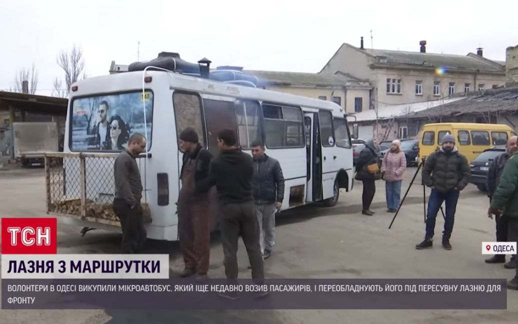 В Одесі закінчують виготовлення пересувної лазні для фронту. Її роблять у мікроавтобусі, який іще донедавна возив міськими вулицями пасажирів. Авто викупили волонтери. Днями розробники випробують його й одразу ж передадуть на передову.