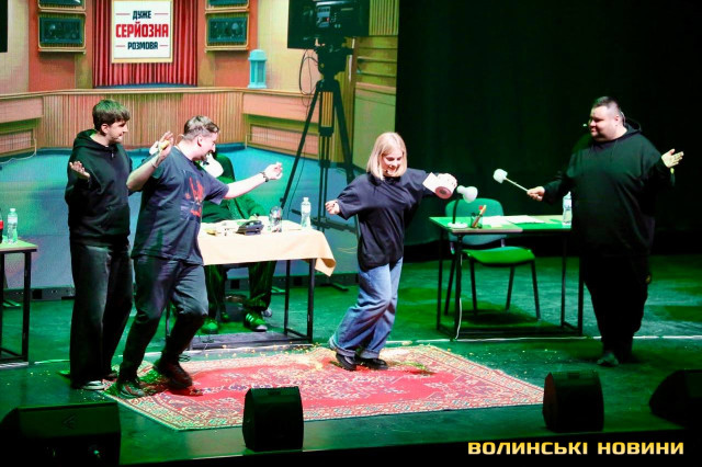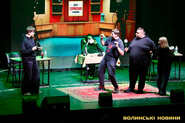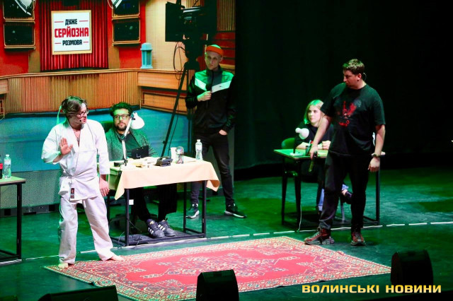Канал «Жабагадюка» обʼєднує коміків, які роблять український розважальний контент. На сцені грають: Олег Свищ, Вова Шумко, Вася Харизма, Діма Коршак та Макс Щербак. А запрошеною гостею у Луцьку стала популярна боргерка Ніка Чернецька. Також одне місце дісталося глядачеві із залу, який задонатив найбільшу суму на благодійний збір на потреби армії.Перед початком шоу на сцену вийшов продюсер проєкту «Дуже серйозної розмови» Дмитро Кучмар. Він розповів про формат гри та подякував глядачам за постійну підтримку.«Ми продовжуємо всеукраїнський тур, який присвячений тому, що наприкінці лютого 2025 року стартував формат «Дуже серйозної розмови» і за цей час у нас вже є понад 30 випусків. І воно все несеться, на нас ходять люди, лайкають, коментують, і ми за це дуже вам вдячні. Хто не знає, що це буде за формат, не хвилюйтеся, ми самі до кінця не знаємо, що буде відбуватися, бо це повна імпровізація», – анонсував Дмитро Кучмар.