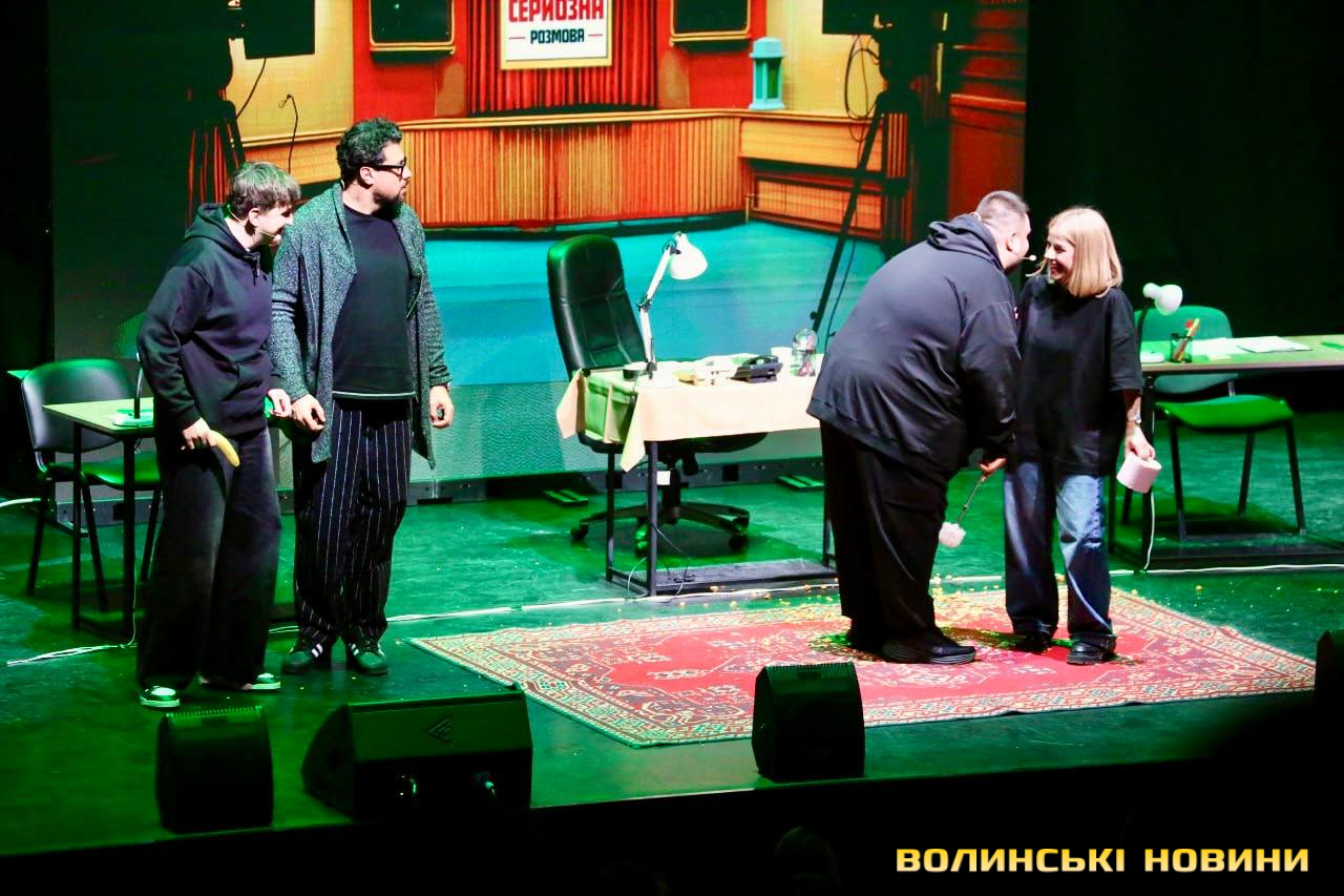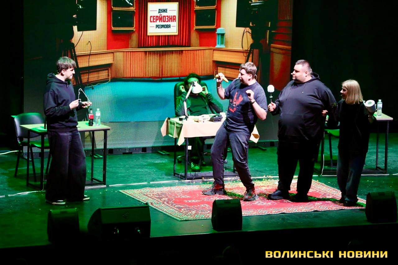 Канал «Жабагадюка» обʼєднує коміків, які роблять український розважальний контент. На сцені грають: Олег Свищ, Вова Шумко, Вася Харизма, Діма Коршак та Макс Щербак. А запрошеною гостею у Луцьку стала популярна боргерка Ніка Чернецька. Також одне місце дісталося глядачеві із залу, який задонатив найбільшу суму на благодійний збір на потреби армії.Перед початком шоу на сцену вийшов продюсер проєкту «Дуже серйозної розмови» Дмитро Кучмар. Він розповів про формат гри та подякував глядачам за постійну підтримку.«Ми продовжуємо всеукраїнський тур, який присвячений тому, що наприкінці лютого 2025 року стартував формат «Дуже серйозної розмови» і за цей час у нас вже є понад 30 випусків. І воно все несеться, на нас ходять люди, лайкають, коментують, і ми за це дуже вам вдячні. Хто не знає, що це буде за формат, не хвилюйтеся, ми самі до кінця не знаємо, що буде відбуватися, бо це повна імпровізація», – анонсував Дмитро Кучмар.