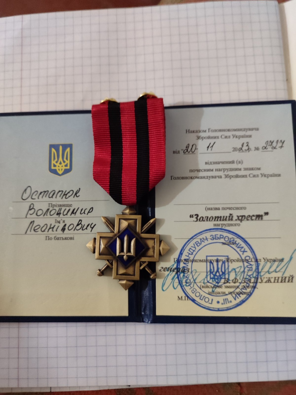 Військовий з Волині отримав нагороду від Головнокомандувача ЗСУ
