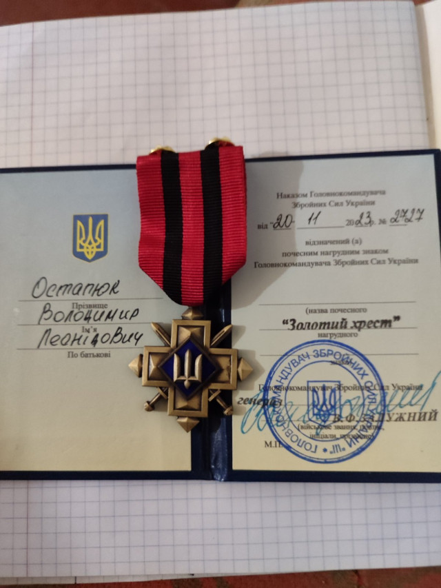 Володимир Остапюк виявив мужність під час виконання бойового завдання на Запорізькому напрямку, внаслідок ворожого мінометного обстрілу отримав поранення.