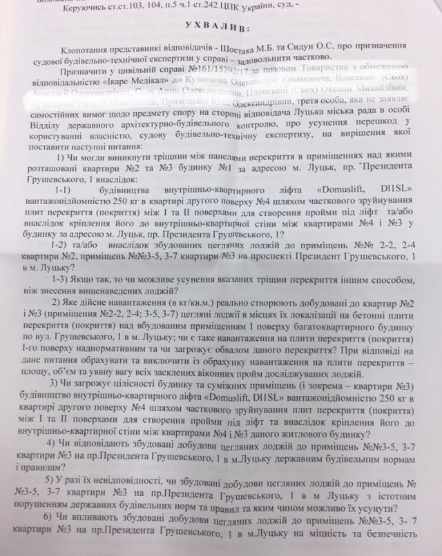 Два місяці тому Луцький міськрайонний суд виніс ухвалу і зобов’язав горе-скаржників тепер за ВЛАСНІ кошти провести третю судову будівельну- технічну експертизу, яка надасть всі відповіді на дискусійні питання і поставить назавжди крапку», - заявила Тетяна Єремеєва.