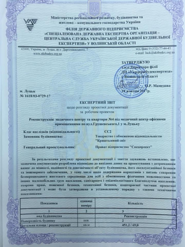 Ми самі ініціювали 2 будівельні експертизи, які незалежно один від одного підтвердили безпечність експлуатації, відсутність будь яких впливів реконструкції клініки на будову.
