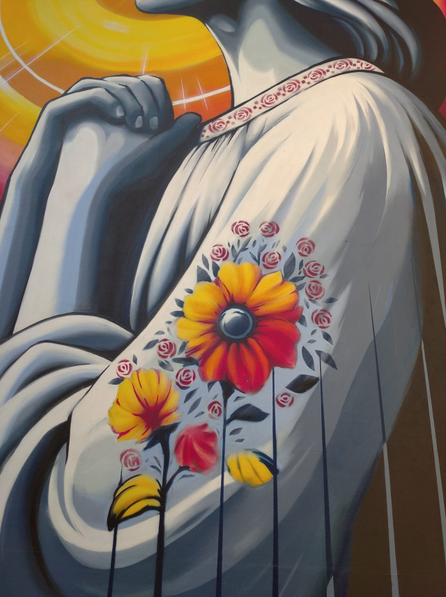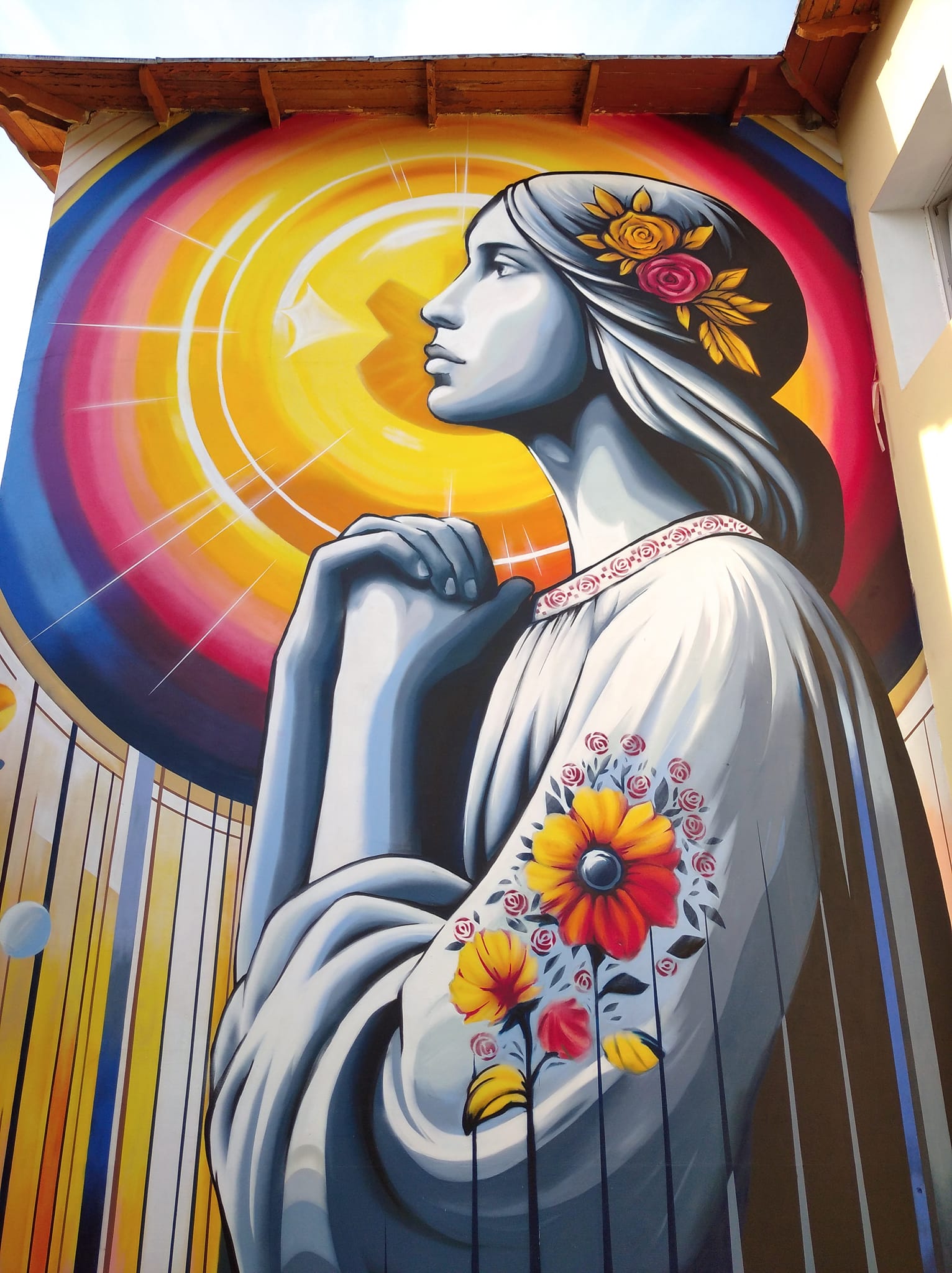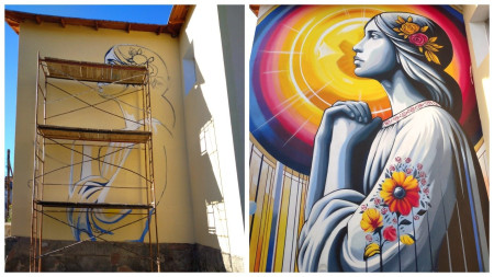 «Поза із руками в молитві символізує глибоку віру та духовність. Вишита сорочка та вінок з квітів вказують на українські традиції та культурну спадщину. Велике сонце на задньому фоні символізує життєву силу, надію та оптимізм. Поєднання всіх цих елементів представляє гармонію між людським духом, культурною спадщиною і природою», – сказала посадовиця.