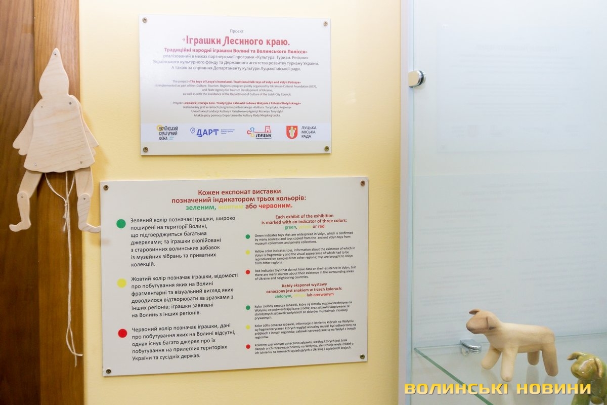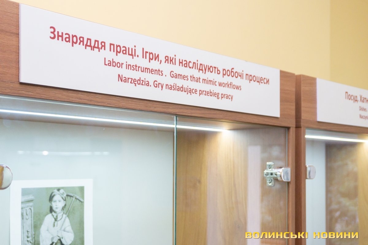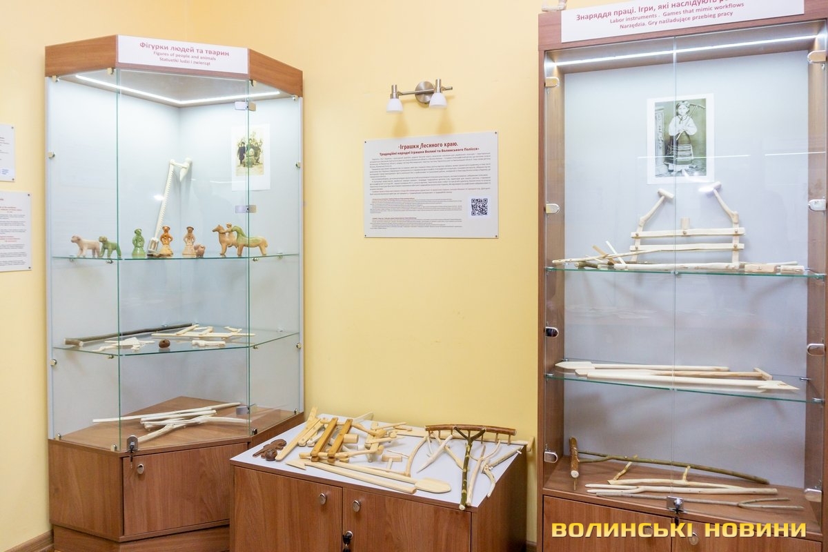 Підбиваючи підсумки, можна оцінити масштаб роботи. Спочатку проводили наукові розвідки: пошук інформації, описи, особливості конструкції. За ними виготовили 300 дерев’яних і керамічних іграшок. 100 з них експонують, 100 передбачено для тактильного ознайомлення, а ще 100 – у фондах. Така кількість експонатів, зібраних в одному місці, підкреслюють автори проєкту, дає право говорити про унікальність виставки.Вітрини підписано трьома мовами, а іграшки згруповано за категоріями: посуд, інструменти, шумові та логічні, транспорт, зброя тощо. За склом можна побачити кольорові картинки. Це копії робіт австро-угорського ілюстратора Еміля Вайса з серії «Волинські типи». На них – забави дітей початку ХХ ст. Ці своєрідні жанрові «фотозамальовки» допомагали майстрам у роботі над відтворенням іграшок.Автори сподіваються, що найближчим часом усі охочі зможуть відвідати експозицію, побачити оригінальні речі та переконатися, що деякі з експонатів вражають навіть в еру гаджетів.У рамках реалізації проєкту до Нового року вхід – безплатний.