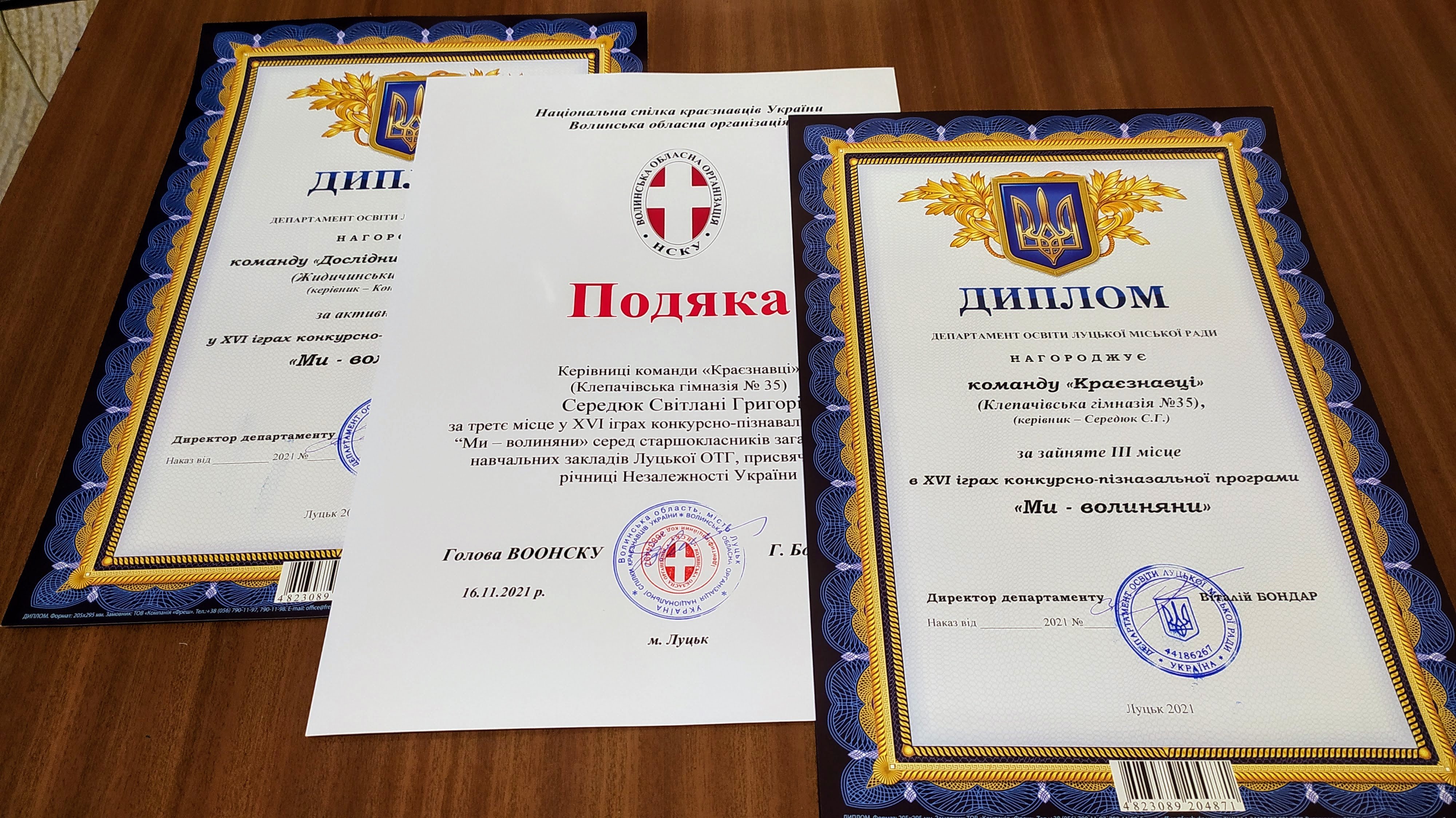 Дипломами конкурсу за активну участь були відзначені команди «Волинські княжні» гімназії №4 ім. М. Левицького (керівниця Ірина Бойко), «Мисливці за удачею» ЗЗСО №17 (керівниця Тетяна Пушкарчук), «Дослідницька студія №31» Жидичинського ліцею №31 (керівниця Людмила Кондратюк), «Дослідники істини» Княгининівського ліцею №34 (керівниця Богдана Мельничук) і «Волинь особлива» Рокинівського ліцею №38 (керівниця Ольга Рогова).