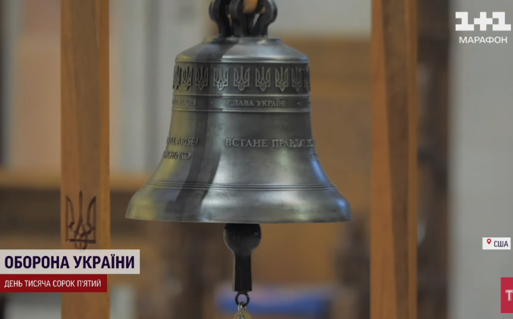 «Напис на дзвоні українською та англійською є цитатою з поезії Тараса Шевченка: « Встане правда! Встане воля!» На верхівці – бойове гасло: «Слава Україні – Героям слава». І облямівка з тризубів», – додав Пол Еш.