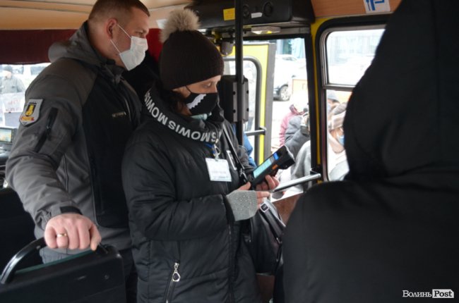 У Луцьку влаштували черговий рейд у громадському транспорті міста. Перевіряли, чи всі пасажири одягнені у маски, мають оплачений проїзд електронним засобом і чи водії дотримуються вказівок щодо перевезення лише на сидячих місцях.
