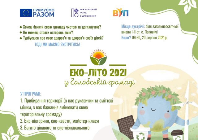 Один з таких заходів – «Еко-літо 2021», що відбудеться в с. Поповичі (Голобська громада) у п’ятницю, 20 серпня.