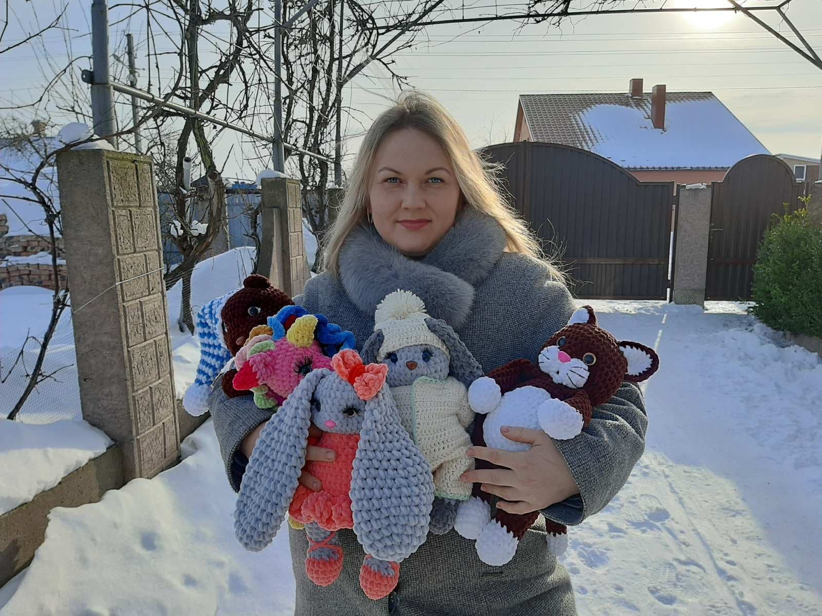 Коли народилася донечка Вікторія, вона постійно вимагала батьківської уваги, навіть під час сну. Тому молода мама стала шукати, чим зайняти себе біля дитячого ліжечка, поки немовлятко спало.Спочатку вишивала бісером, але згодом зрозуміла, що то не її. Тоді почала в’язати спицями дитячі шкарпеточки, пінеточки, камізельки, шапочки. Аж поки не натрапила в соціальних мережах на гарні іграшки, зв’язані гачком. Замовила для доньки зайчика. Коли отримала іграшку, то була в захваті від неї. Тоді в голові промайнула думка: «От якби й самій навчитися в’язати таку».Відтак дуже хотілося спробувати. Жінка переглянула багато відео на YouTube, море схем в інтернеті – і закрутилося…