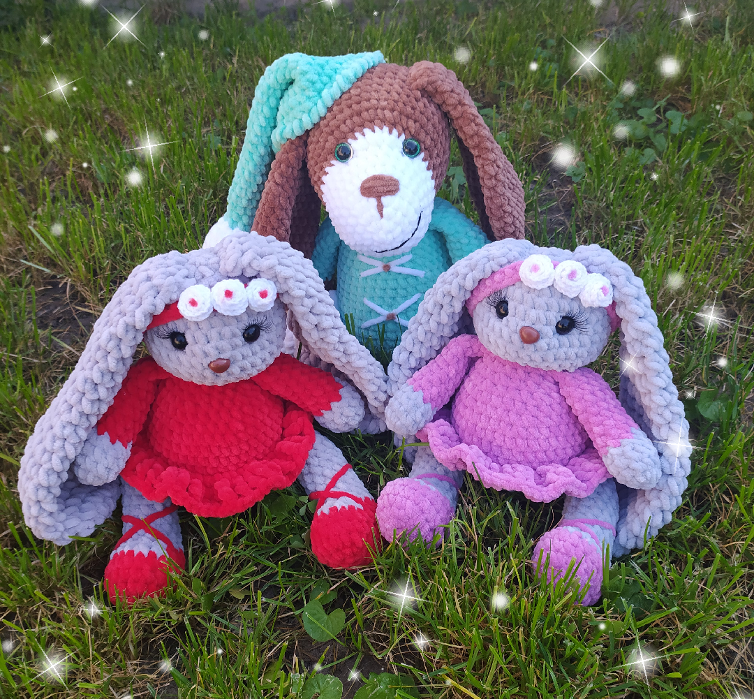 Творіння її рук та фантазії мають яскраву гаму кольорів, м’якенькі та приємні на дотик, адже виготовлені з надзвичайно ніжної плюшевої пряжі, схожої на велюр. Тому не залишать байдужою будь-яку дитину.