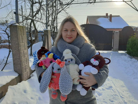 За понад рік творчості майстриня створила понад 20 видів іграшок. Це милі й симпатичні зайчики, котики, ведмедики, песики, корівки та інші тваринки – улюбленці дітлахів.Іграшковий звіринець урізноманітнюють герої з казок та мультиків – загадковий єдиноріг, кумедні Лунтик, Буба, кішечка Hello Kitti, лялька Лол, Синій трактор, цуценя Гонщик…Кожна іграшка по-своєму оригінальна. Для цього доводиться комбінувати нитки, підбирати необхідний колір очей. Деякі плюшеві забавки мають вбрання. Платтячко чи кофтинку можна знімати і надягати.Любов до експериментів, прагнення зробити щось новеньке постійно поповнюють колекцію власноруч виготовлених іграшок. Ось буквально нещодавно, на порозі 2021-го, у ній з’явився символ цього року – усміхнений бичок у наряді Санта Клауса.Наталія пригадує, що спочатку на виготовлення однієї іграшки йшло багато часу, іноді до п’яти днів. Зараз, коли вже набила руку, цей процес займає приблизно два дні. Найбільше подобається працювати гачком.