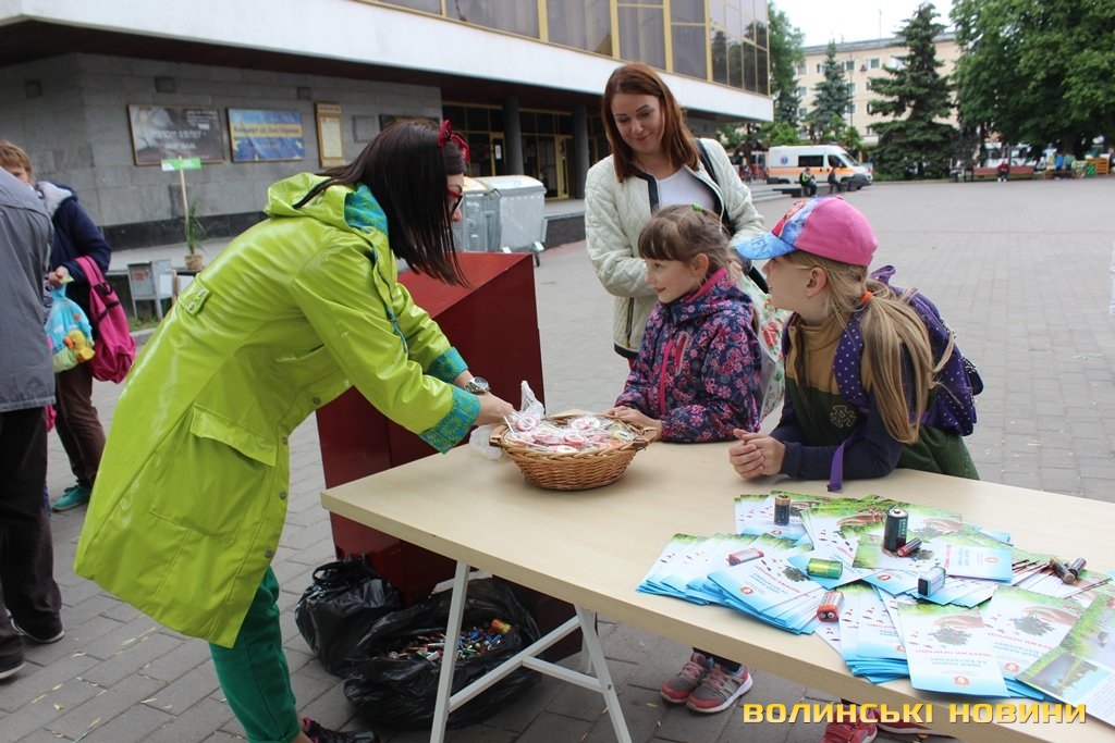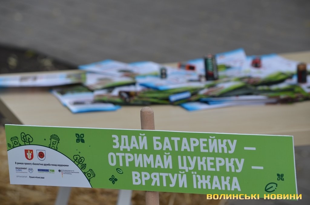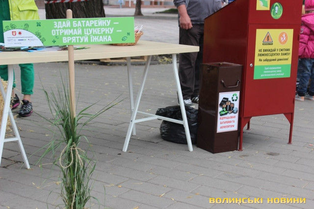 Окрім цього, на Театральному майдані відбувається акція «Здай використану батарейку і лампочку - врятуй їжака - отримай цукерку».
