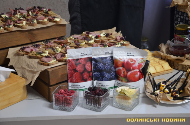 Екологічною продукцією частувалися учасники форуму «Лісові ресурси: сучасні виклики та перспективи», зокрема високопосадовці лісової галузі та представники областей. Така ініціатива просувала лісового господарства Волині.