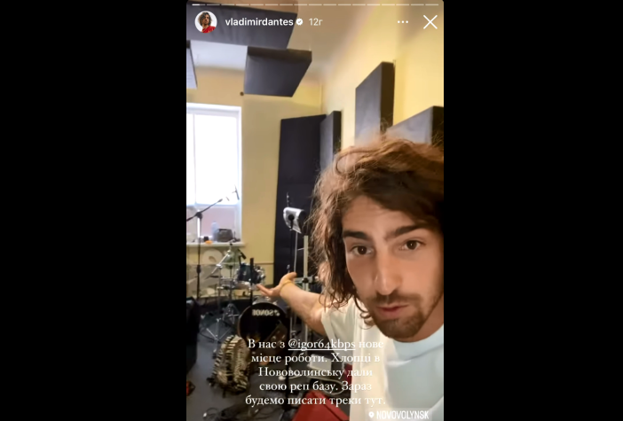 «У нас нове місце роботи. Хлопці з Нововолинська дали свою реп-базу. Зараз будемо писати треки тут», – зазначив співак у сторіс.